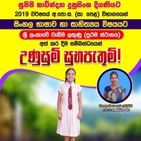2019 වර්ෂයේ අ.පො.ස. (සා/පෙළ) විභාගයෙන් සිංහල භාෂාව හා සාහිත්ය විෂය සඳහා ශ්රී ලංකාවෙ වැඩිම ලකුණු ලබාගනිමින් දිවයිනේ ප්රථම ස්ථානය දිනාගත් සුපිපි කාවින්ද්යා දුනුසිංහ දියණියට අපගේ උණුසුම් සුභ පැතුම්. පාසලට කීර්තියක් අත්පත් කර දුන් දියණියනි, ඔබට බෙහෙවින්ම් ස්තූතියි.