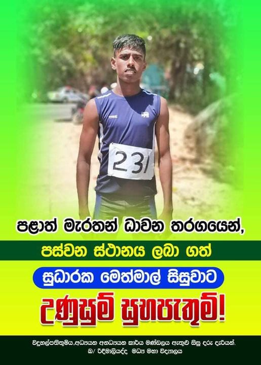 2023 පළාත් මැරතන් ධාවන තරඟයෙන් පස්වන ස්ථානය දිනාගනිමින් රිදීමාලියද්ද මැදි මහ විදුහලේ කීර්ති නාමය ඉහළට ඔසවා තැබූ සුධාරක මෙත්මල් සිසුවාට උණුසුම් සුභ පැතුම්!